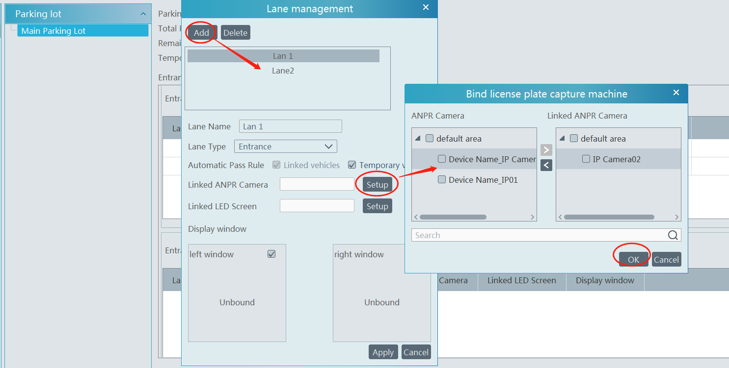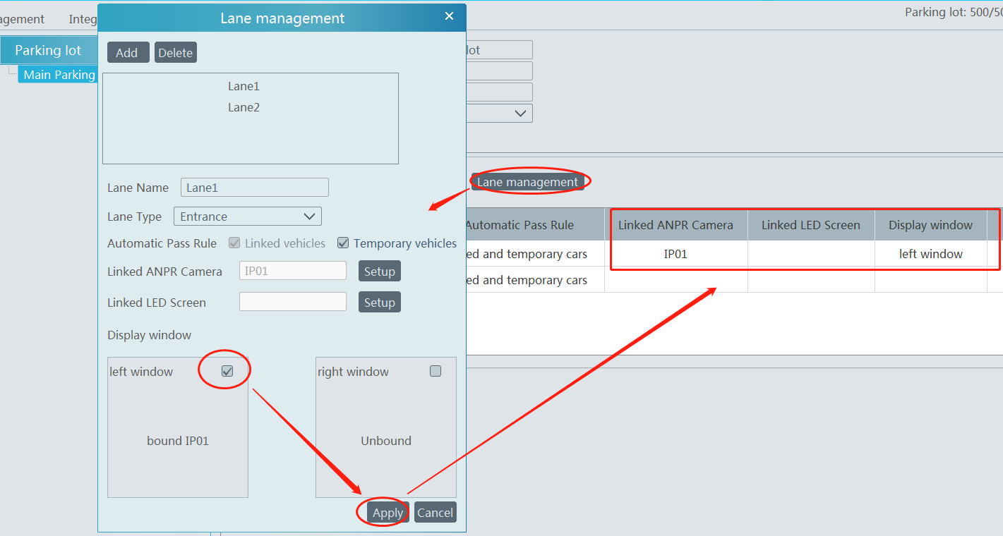 6. Select the window, and then click [Apply]. Then the ANPR camera and LED display will link to this window as below.