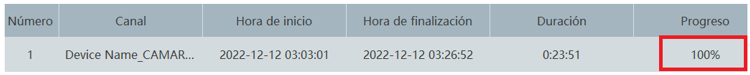 3. A colored bar will appear in the period that has recording, with the mouse pointer we locate ourselves over the start time and click on the scissors on the left side , now we will position ourselves over the end time and click on the scissors on the right side , once the download period has been selected, we click on the arrow.