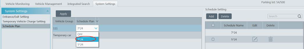 Set the schedule of linked and temporary vehicles. If the vehicle in the vehicle group wants to enter the parking lot in its unscheduled period, it will not be allowed to enter. But vehicles can leave the parking lot at any time.
