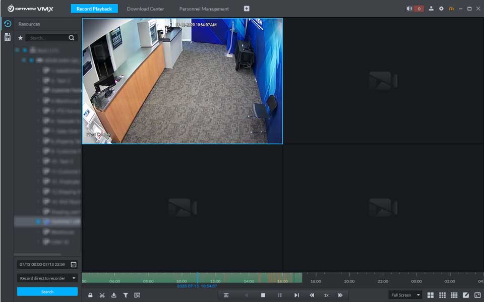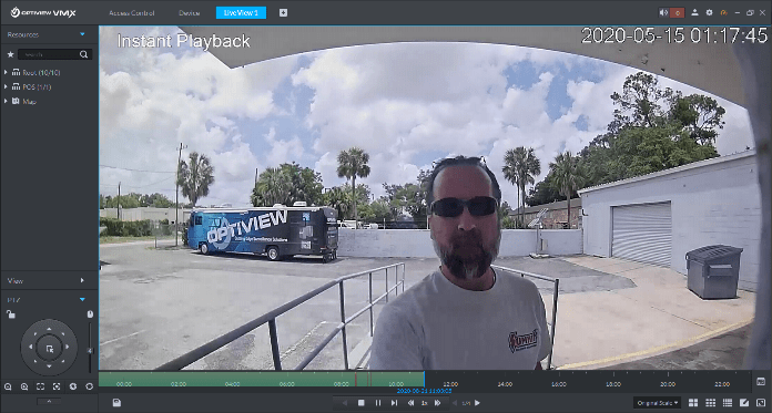 The Optiview VMX platform allows for quick and easy playback of surveillance footage from both the Live footage interface, and the Playback interface. Users can search by time, date, or event type. Users can also zoom in on the timeline, and drag through the timeline with video scrubbing. Download multiple video files at a time, take single frame snapshots, or a ‘burst’ of snapshots.