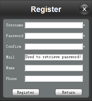 On the register clicking the button “login” and jump to “retrieve password” interface.