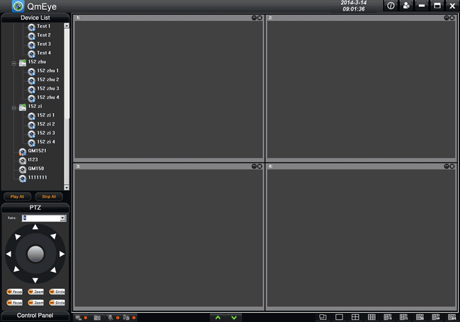 The tool allows adding and monitoring a large number of cameras simultaneously. The cameras in your network can be automatically found and installed. The program supports IP and P2P connection modes as well as UMSP, HZXM, and HZZN protocols. It could also be necessary to provide the camera’s password to access it. After this step, the devices can be organized by grouping them into different folders. For monitoring purposes, it is possible to divide the workspace into up to 64 regions. Moreover, on the left, there is a panel, from which you can control the selected camera.