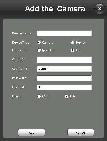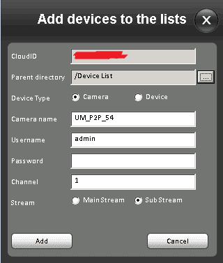 Streaming: request to a front- end device stream format while live preview, default is sub stream. Fulfill the above information: after finished, click “add” button