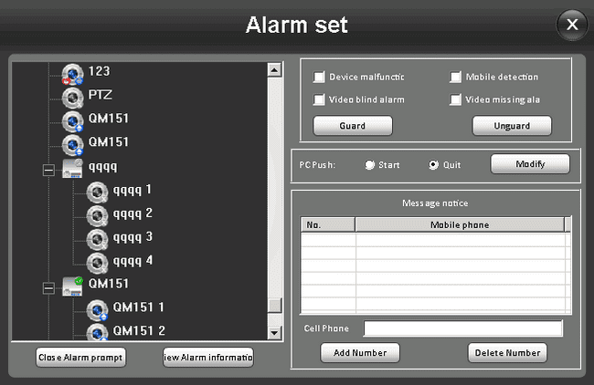 Turn off the alarm: turn off the alarm, which the PC client is no longer to prompt the push information of device trigger alarm