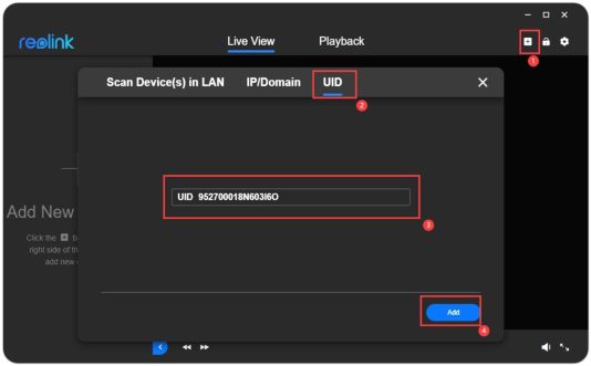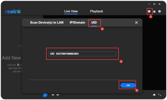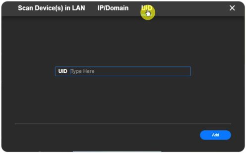 Step 2. Click “+” icon on the top right corner, choose UID and type in the UID of the camera, and then, click Add to set it up.