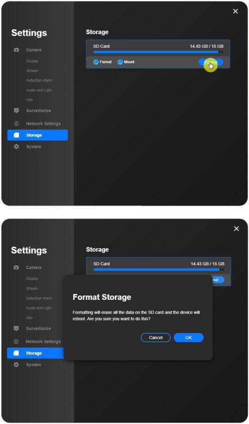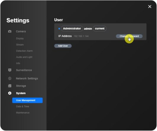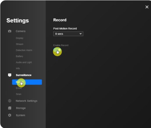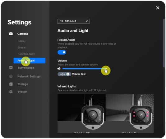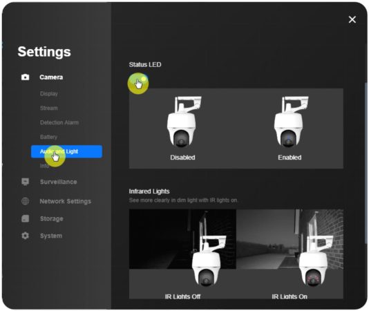 Stream Detection Audio and Light □ Surveillance (ifi) Network Settings 9 Storage O System Date & Time k |