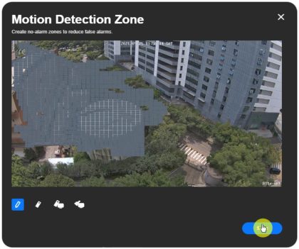 Click Pen to create a zone over the area that you don’t want to receive alerts about. Please don’t forget to click the Save button to save your settings.