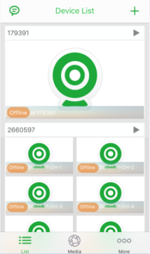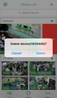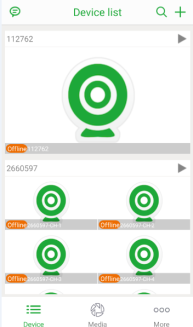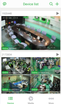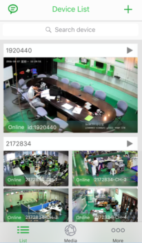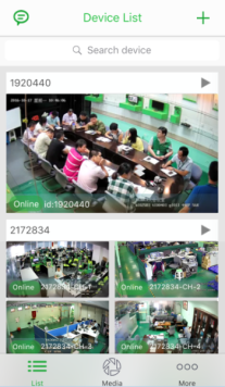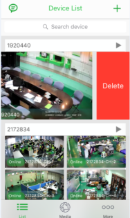 The green means “online ‘playback video stream on device list after normal connection , the orange means device“ offline ”and can’t playback video stream . User can add ,delete and search list and modify name on device list as the picture below