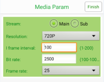 User can modify resolution ,frame and bit rate to main and sub stream parameter, then watch different result as the picture below:
