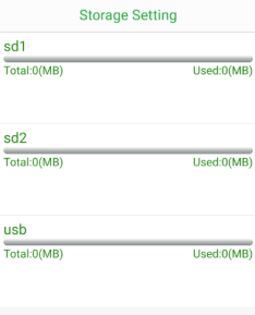 The storage setting mainly targets recording file in storage device, which introduce device usage condition and support to format and unload as the picture below: