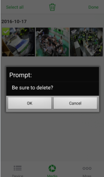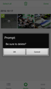 User also can delete captured picture , it only need click “edit” button on top right corner ,choose the file to delete ,click “”button, will pop up window, then click “OK” as the picture below: