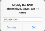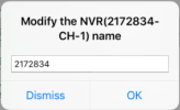 Because our system have stored device cloud ID automatically, it is not easy for memory ,user can be permitted to modify IPC/NVR and channel name .Choose necessary device and will popup relative dialog box, input new channel name and confirm as the picture below: