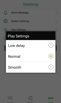 Choose “low delay”, which show real time image, but the fluency is not so good. If user choose “fluency ”,which show very fluent image ,but the real time is not so good . If user choose“normal”,the video playback will be ok between low delay and fluency as the picture below :