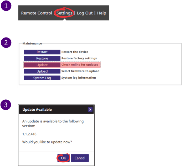 Optionally, you can manually download the firmware upgrade from here and then click Upgrade from the Maintenance section, as shown in step 2.