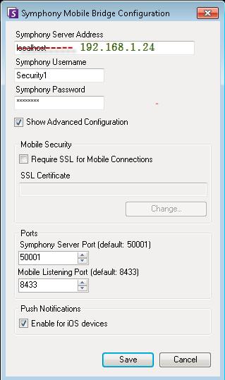 During Mobile Bridge setup, you must enter a unique IP address when Mobile Bridge is installed on the same machine as the Symphony Server. Do NOT enter 127.0.01 or localhost during the Mobile Bridge setup because the Thin Client will NOT be able to retrieve video via that Mobile Bridge.