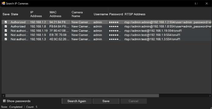 Automatic Camera Search via ONVIF