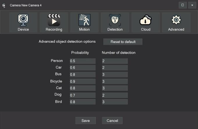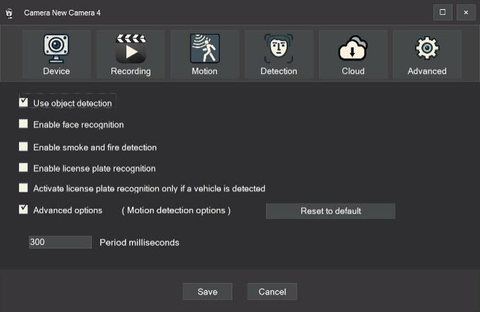If you have enabled motion detection on the previous tab, you can also use object detection powered by computer vision.