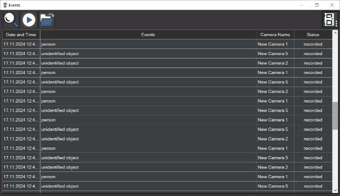 Here you will see all motion detector activations, as well as object detection of faces and car license plates, smoke and fire detector triggers.