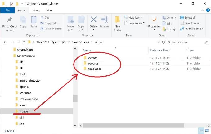 By default, the “videos” folder is created in the same directory where the SmartVision program is installed.