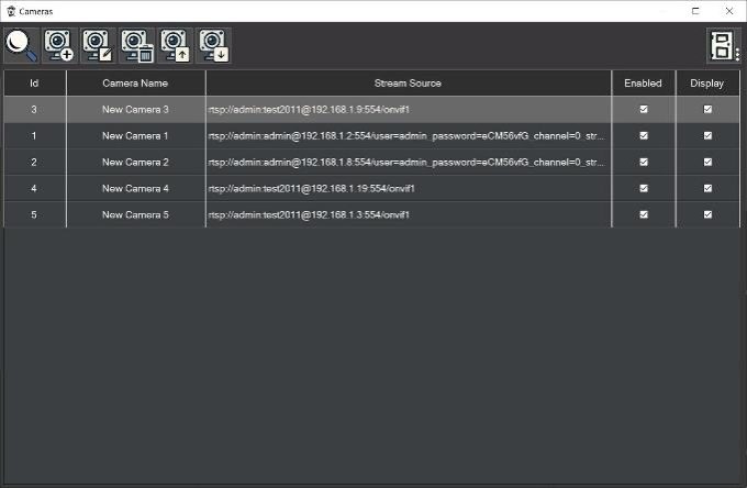 Cameras can be added either automatically or manually. The first icon on the camera list panel is used for automatically searching for IP cameras in the local network.