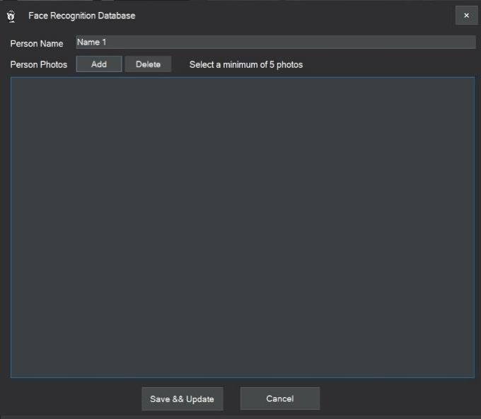 To add a new face to the database, enter the person’s name and click Add.