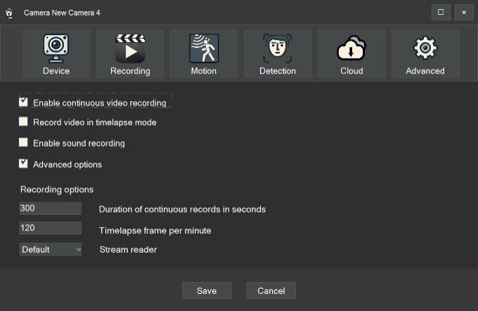 • Recording: Enable and configure continuous recording and time-lapse recording.