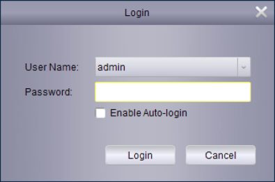 NB: The password requested when you run the software the second and subsequent times is <Blank>, unless you change this in the software. The first login screen below is for the software, not the recorder. This is, therefore, not the username/password combination you use to access the recorder itself.