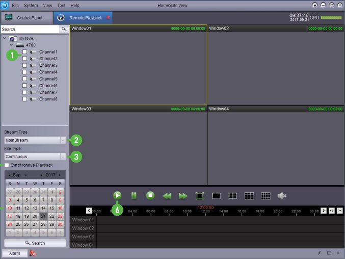 Remote Playback: This allows you to remotely play video that is located on your DVR or NVR’s hard drive. You have the choice of playing video that matches your recording schedule (Motion),