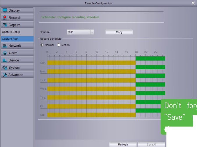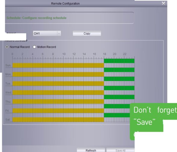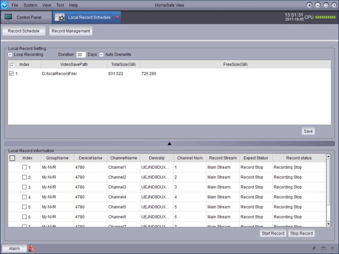Local Record Management: Allows you to create a local recording schedule for each camera connected.