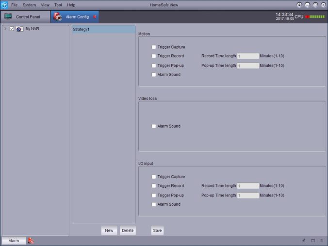 It’s recommended that you configure the alarm panel directly on your NVR (check your device’s instruction manual for more information).