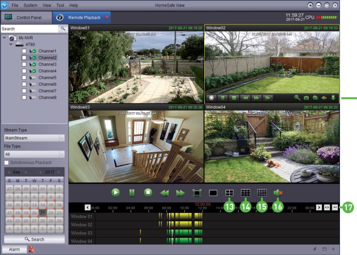 Installing HomeSafe View on your computer allows you to monitor the cameras on your DVR or NVR. You can also change configuration settings, access saved video files as well as the ability to retrieve your recovery code if you have forgotten your device’s password.