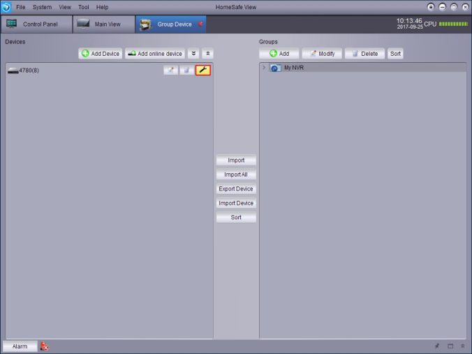 Group Device Management: Click this if you need to make changes to your DVR or NVR configured in the Groups panel, or if you want to add additional devices.