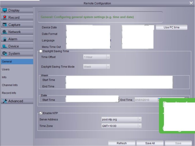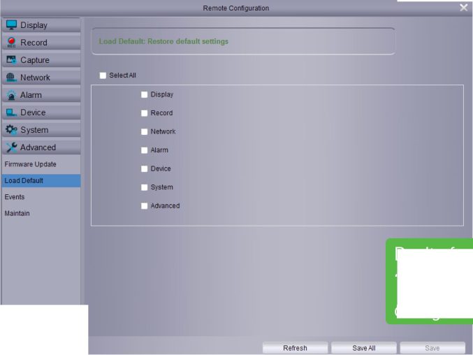 Select All: Click the checkbox to restore all default settings then click “Save”. Your DVR or NVR will reboot and the Startup Wizard will appear on-screen.