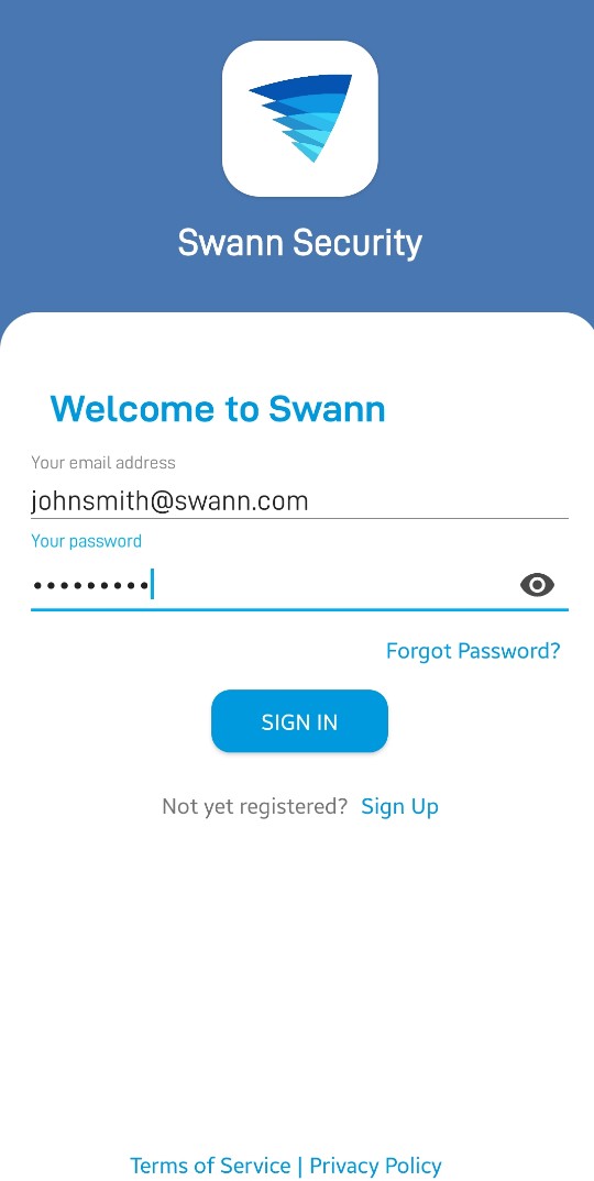 Display the application version information, your phone model number and the Android OS version. You can also access the terms of service and privacy policy relating to the Swann Security app.