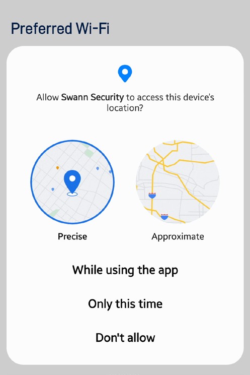 Providing your device location helps us personalize your experience on the Swann Security app and other Swann services. Once done, tap the Next button to proceed.