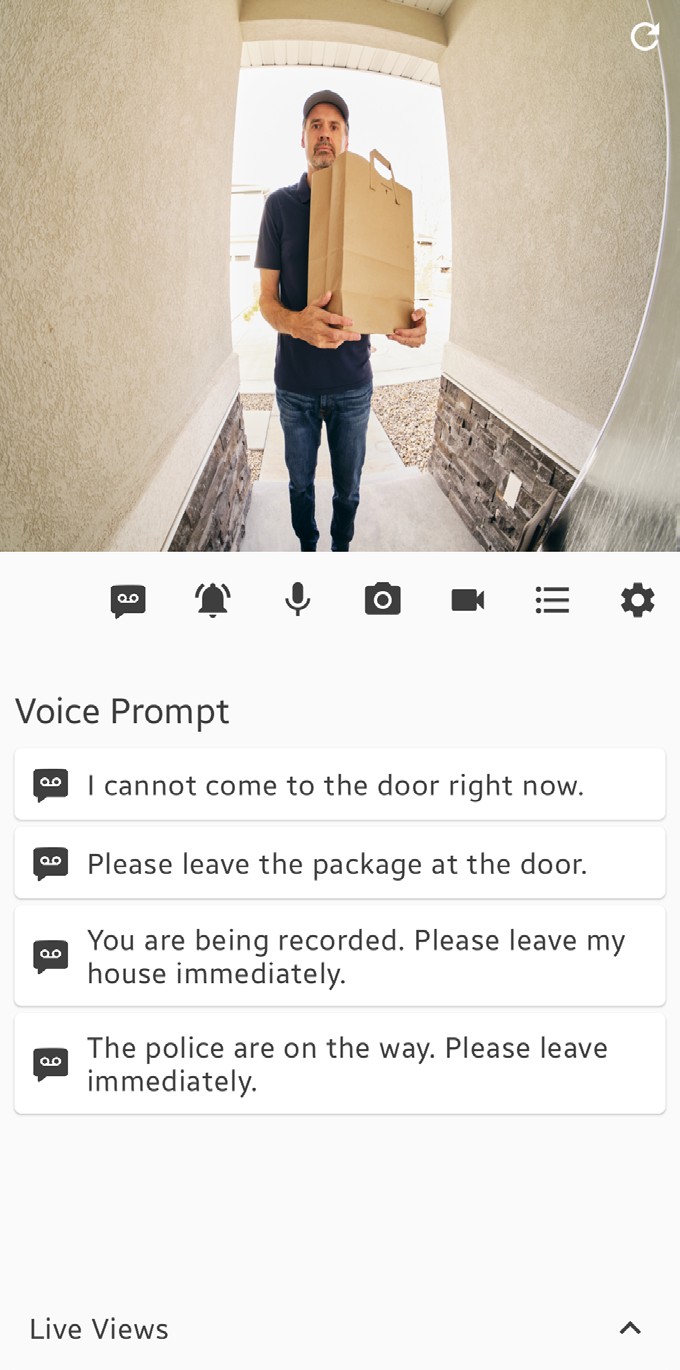 The SwannBuddy Video Doorbell has a smart “Pre- recorded Messages” feature available. Tap this icon to display the list of pre-recorded messages which you can quickly choose to play as a response to visitors when you can’t answer the door.