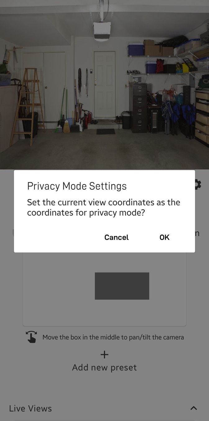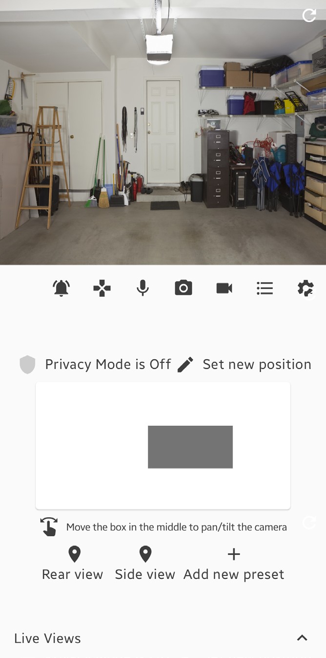 Tap to enable/disable Privacy mode. When Privacy mode is enabled, the camera will rotate to its privacy mode