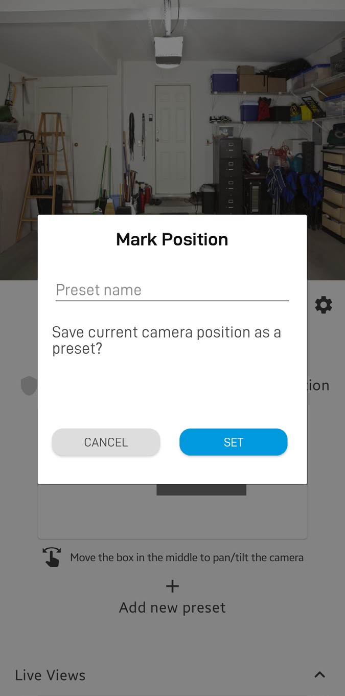 Camera presets let you easily move the camera to pre-defined viewpoints. To create a preset, use the grey box to adjust the camera to your desired viewing angle, and then tap the ‘Create Preset‘ button. A box will appear where you can name the preset, as shown above.