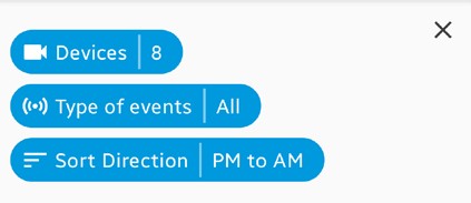 Tap to access the playback filter options, as shown on the right. You can sort recordings in chronological (AM-PM) or reverse chronological (PM-AM) order, and filter recordings by device type and event type.