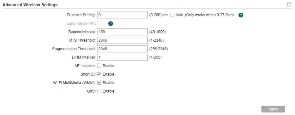 | Alignment Beep | Enable the beep sound during the device antenna alignment. This function can help users to align the antenna easily without looking at the management interface. When received signal levels reach the defined levels, the different beep sound will be played. The lower the sound frequency, the stronger the signal strength. |