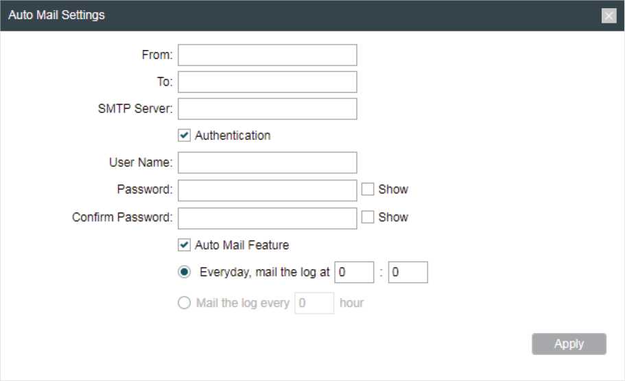 | Backup Configuration | Click Backup to back up the current configuration to your PC. |