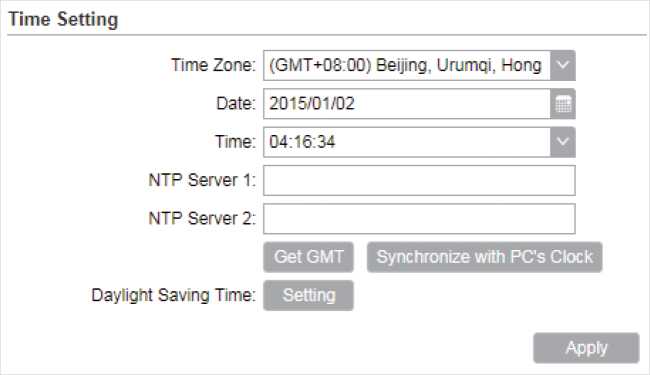 • Specify the NTP Server, then click the Get GMT button to get the system time from the NTP server