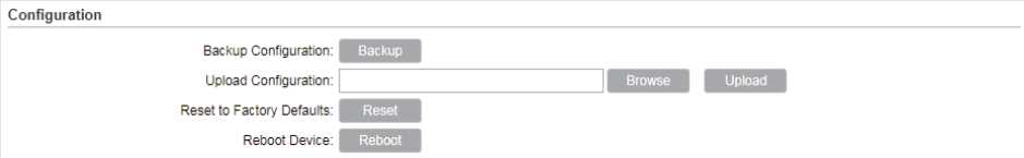 This section is used to back up or upload the configuration file, reset the device and reboot the device.
