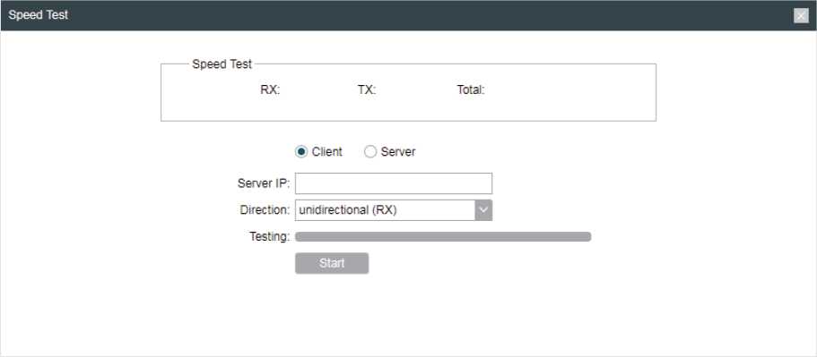 | Direction | Select the direction of the speed test including unidirectional (RX), unidirectional (TX) and bidirectional. |