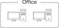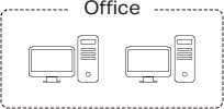The device in the network: The device in AP Mode connects to one office network and creates a wireless network. The device in Client Mode connects to the other office network and the wireless network.