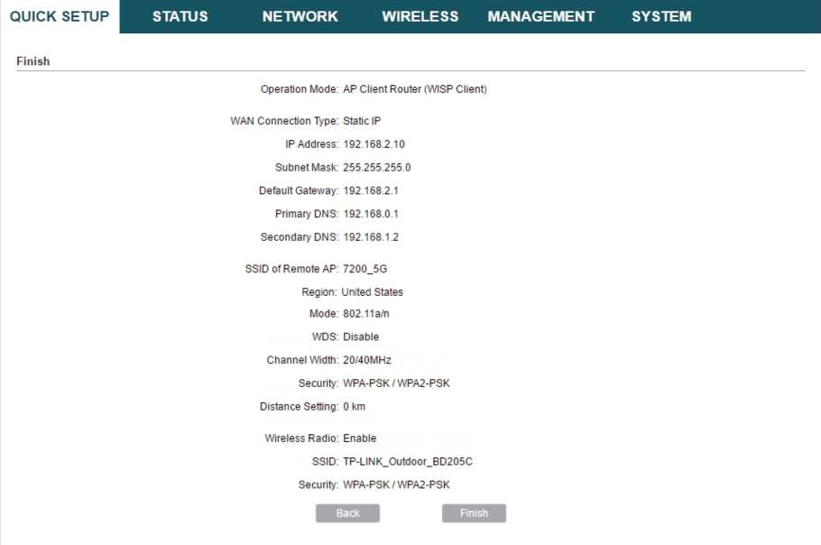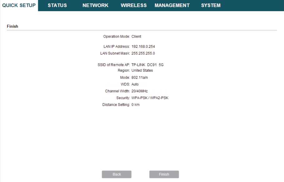 The device in the network: In the adjacent town covered by wired network, ISP (Internet Service Provider) can put up a device in AP Mode to access the internet and transform wired signal into wireless one. In the remote area, users can put up a device in AP Client Router Mode to access the wireless network.