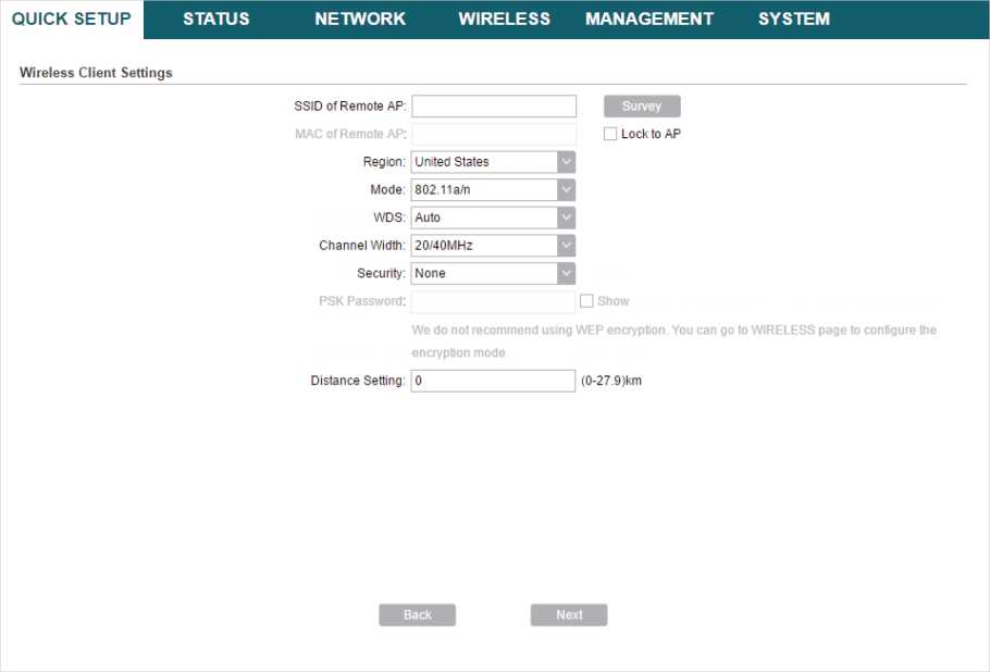 This chapter introduces how to quickly build a wireless network in different operation modes. Follow the steps below: