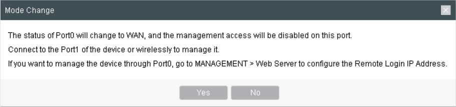 In this mode, the device cannot be managed directly through the port connected to ADSL/Cable Modem. To manage the device, connect the management host to the device wirelessly or via the other LAN port.