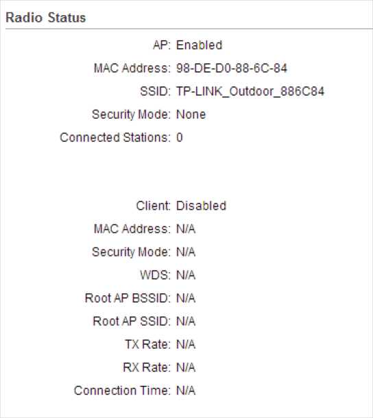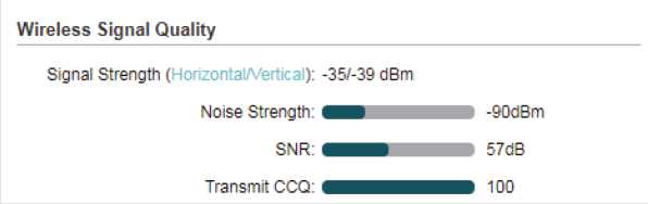 | Signal Level | Displays the signal strength of the last received packet. The signal strength is the combined value of the two chains. |