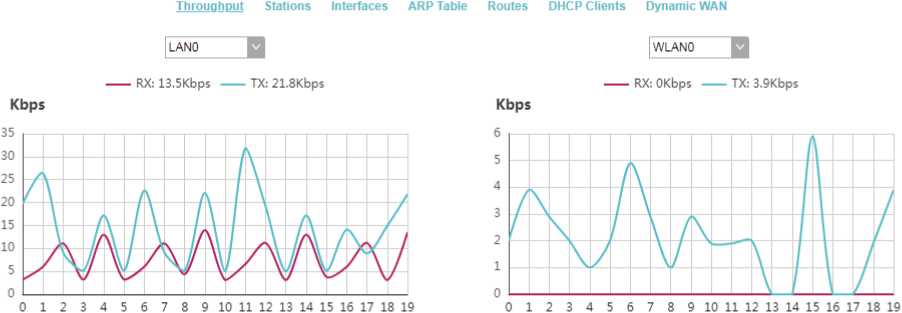 | Speed Test | Displays the data streams that the device is transmitting (TX), receiving (RX) and both of them (Total). |